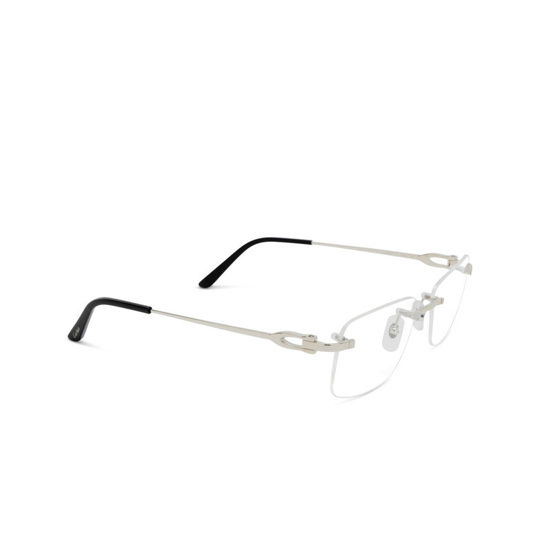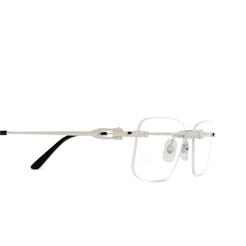 The CARTIER - CT0521O-002 frame is an elegant and contemporary reinterpretation of the historic Décor C temple. With its supple rectangular shape and iconic detail, this metal frame is both aesthetic and functional. Available in platinum finish, it offers optimal comfort thanks to its acetate tips with Cartier logo and its Double Décor C nose pads.