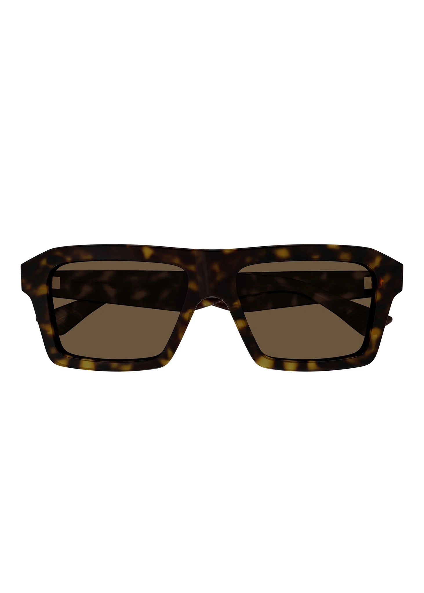 Bottega Veneta New Classic sunglasses collection model BV1213S color code 002 shiny dark havana featuring solid brown lens.