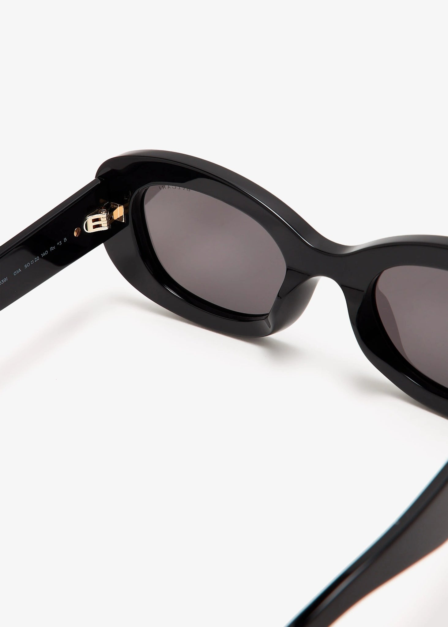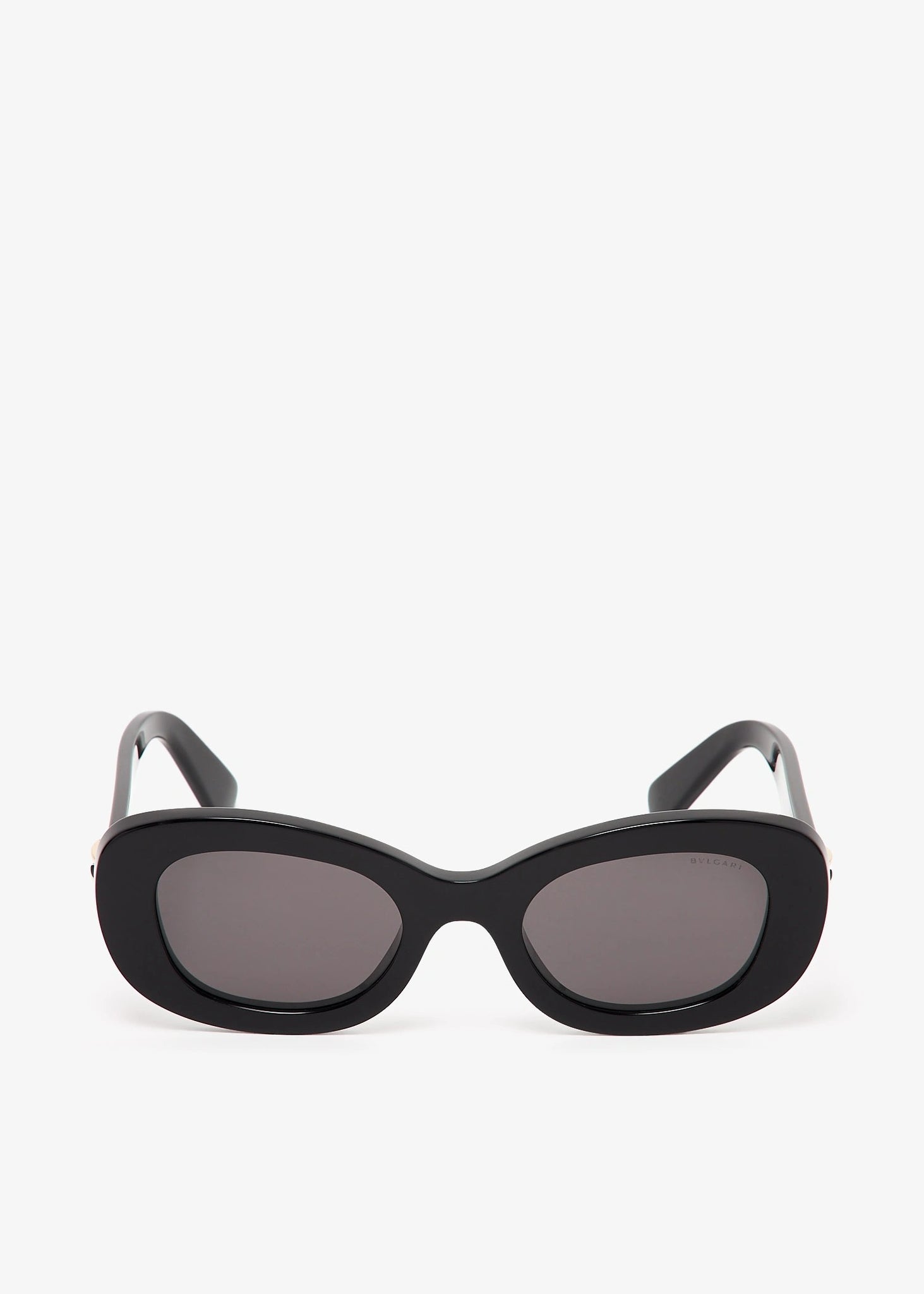 Opt for a contemporary and charismatic style with BVLGARI's BV40039I B.zero1 oval sunglasses. Presented in a thick oval frame with UV-protective lenses, the temples are embellished with a distinctive aesthetic signature inspired by the iconic jewelry line. This accessory is also compatible with prescription lenses.