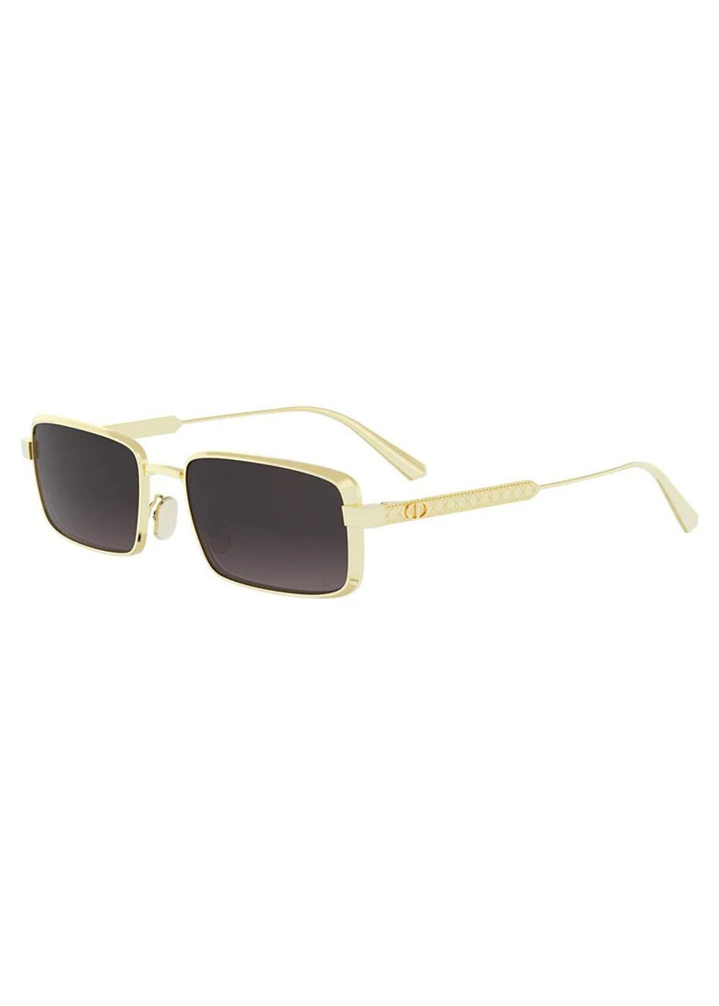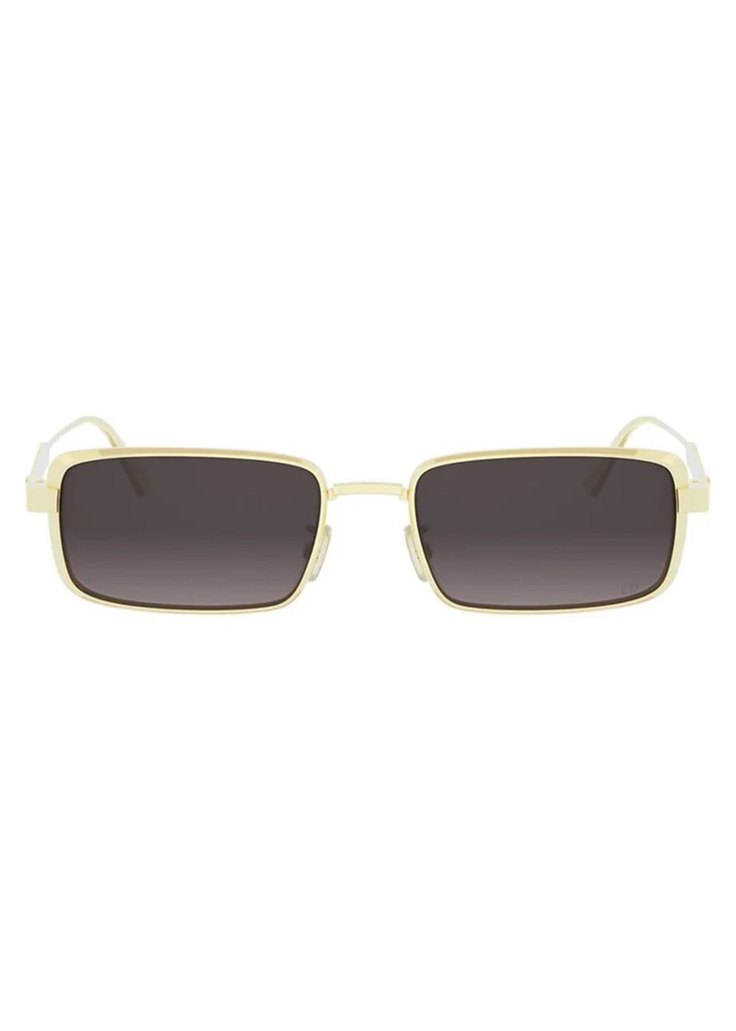 This square Dior sunglass comes in a gold frame with grey gradient lenses.