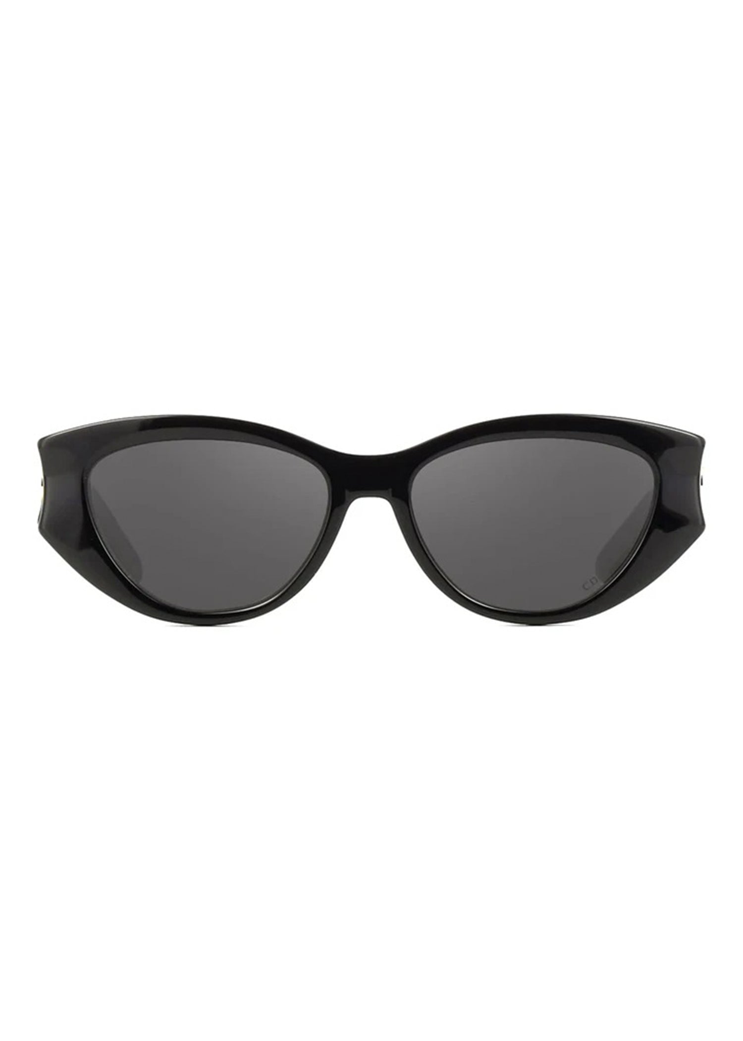 This cat eye Dior sunglass comes in a shiny black frame with grey lenses.